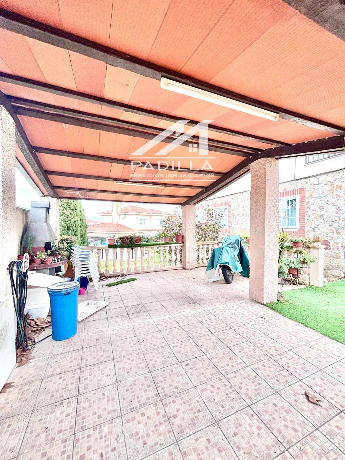 Porche cubierto con barbacoa, perfecto para reuniones y comidas al aire libre.